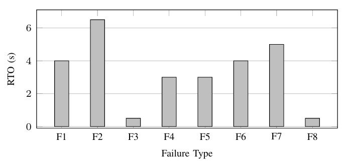 在八种故障场景下的RTO性能