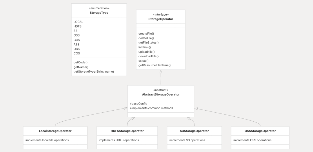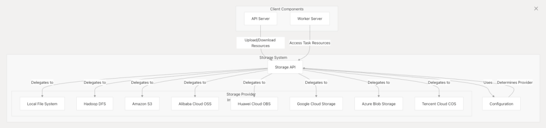Apache DolphinScheduler 的存储系统提供统一接口,支持跨多种存储后端(如本地文件系统、云存储)进行文件存取。其核心功能是管理工作流和任务所需的资源文件(如脚本、JAR包、配置文件),并通过抽象底层存储技术,实现无缝切换存储方案而无需修改应用代码。