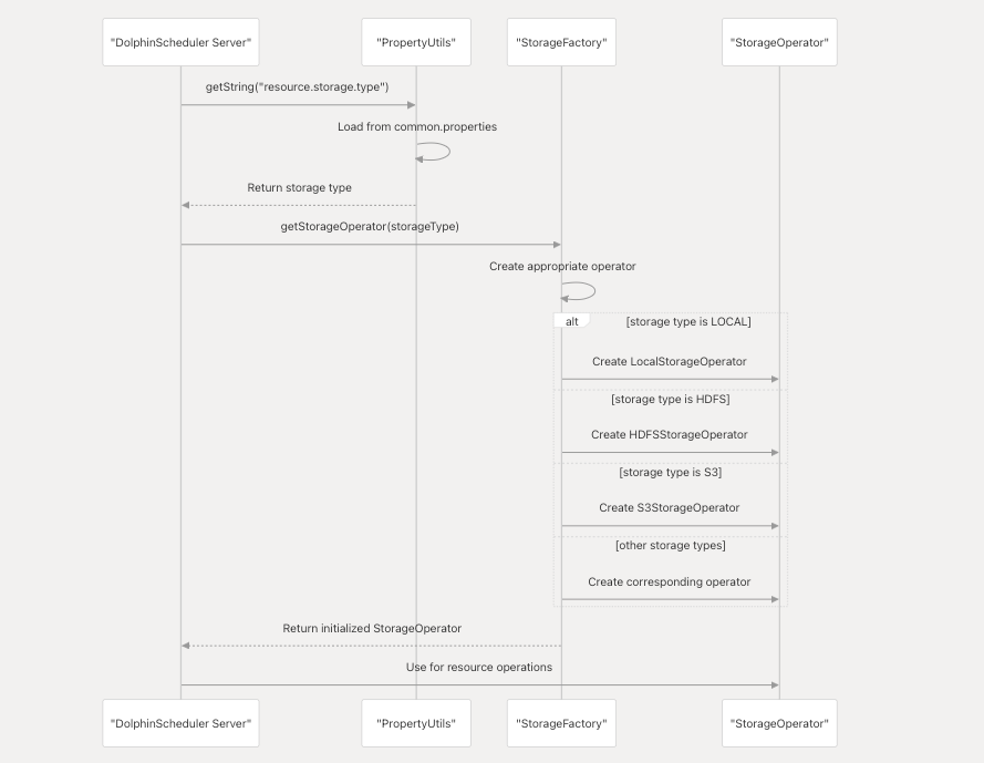 DolphinScheduler 启动时按以下逻辑初始化存储操作器: