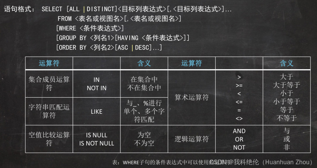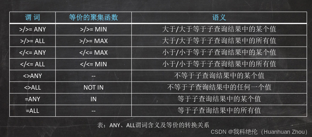 (1)子查询可以是任意复杂的SELECT语句,但通常不允许含有ORDER BY子句和DISTINCT短语。