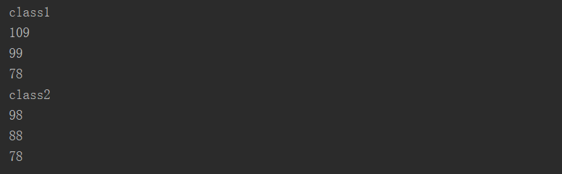 //Scalaimport kfk.spark.common.CommSparkContextScaobject GroupTopnScala {def main(args: Array[String]): Unit = {val sc = CommSparkContextSca.getsc()val list = Array("class1 67","class2 78","class1 78","class1 99","class1 109","class1 34","class1 45","class2 34","class2 88","class2 98","class2 33");val rdd = sc.parallelize(list);val beginGroup = rdd.map( x => {val key = x.split(" ")(0)val value = x.split(" ")(1).toInt;(key,value)});val groupValues = beginGroup.groupByKey();val topValues = groupValues.map(x => {val values = x._2.toList.sortWith((x,y) => (x > y)).take(3)(x._1,values)});topValues.foreach(x => {System.out.println(x._1);x._2.foreach( y=> System.out.println(y))})}}