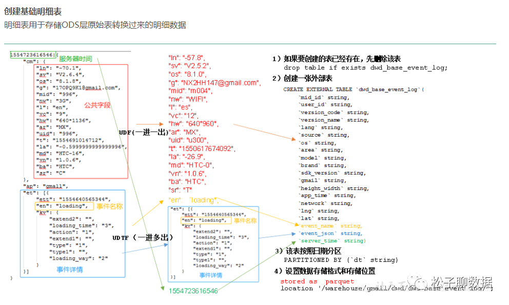 表schema:一般按天创建分区,partitioned by 一般都是按照天进行存放。