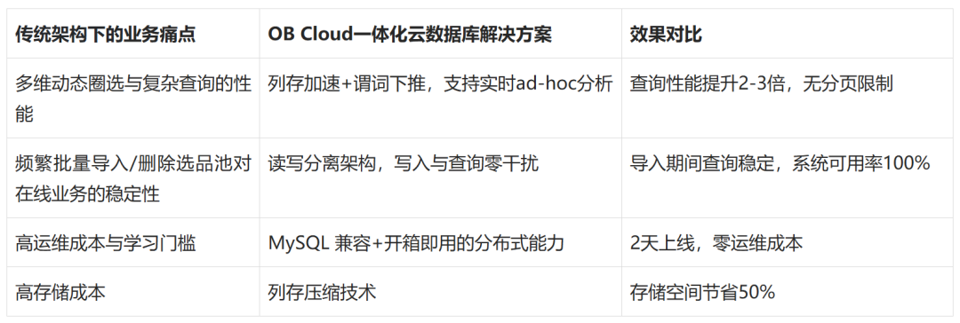 三、OB Cloud:为选品场景量身打造的一体化云数据库