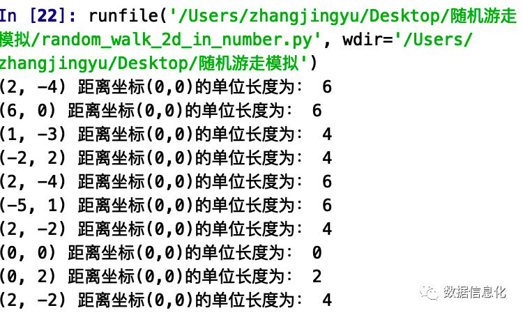打印结果可以看到随机走的路径长度:
