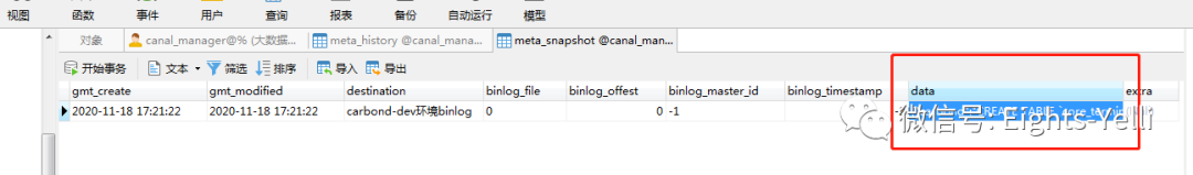 meta_snapshot表中,已经有数据插入,data字段中则是存放的schema信息