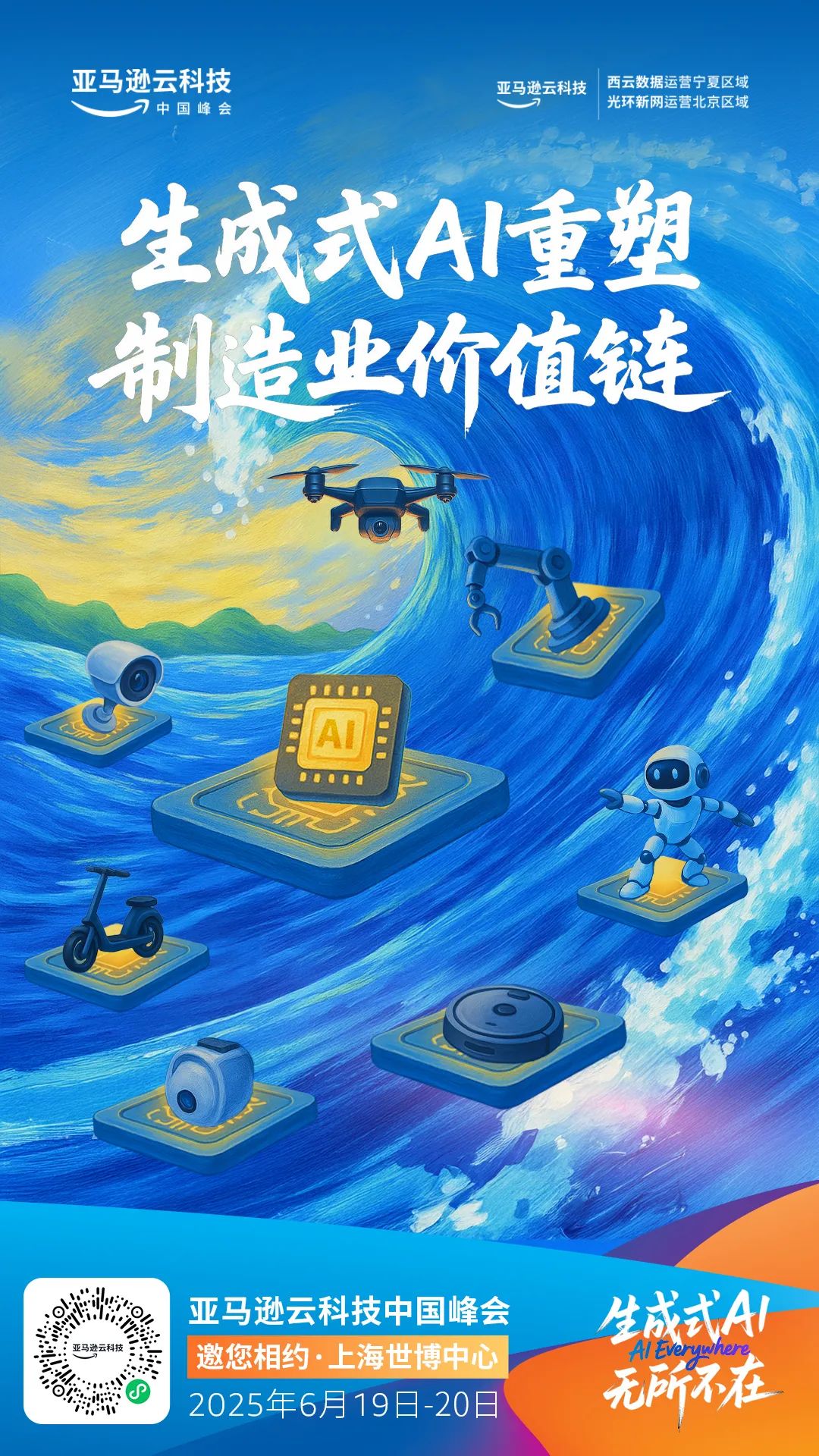 6月19日,2025年亚马逊云科技中国峰会·制造业专场将在上海盛大开启,围绕“生成式AI重塑制造业价值链”这一核心议题,携手行业领先企业、行业合作伙伴,通过互动演示、论坛和展位剧场,共同探索生成式AI如何重塑“研、产、供、销、服”价值链。