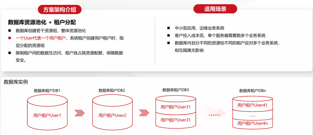 中小型应用或边缘业务系统:对于中小型应用或需要故障隔离的业务系统,推荐选择基于数据库实例的多租户方案,每个租户独占一个数据库实例,确保数据安全和隔离。