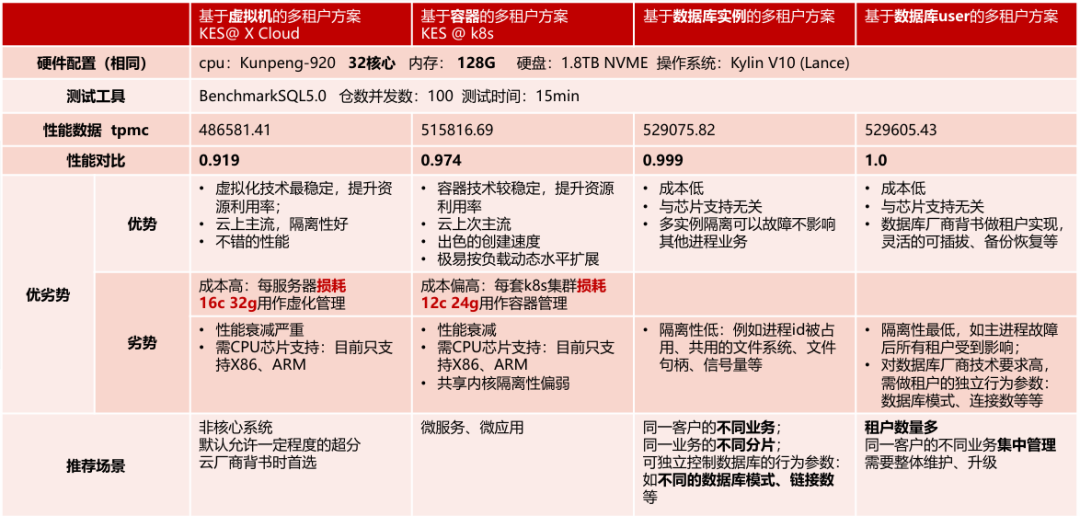 方案全面:从虚拟化、容器到数据库实例、用户级别,提供全方位的多租户解决方案,可根据客户实际需求灵活选择。