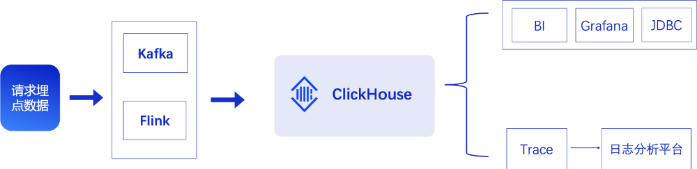 应用层:BI工具(如Grafana)与算法平台直接对接ClickHouse,实现秒级响应。