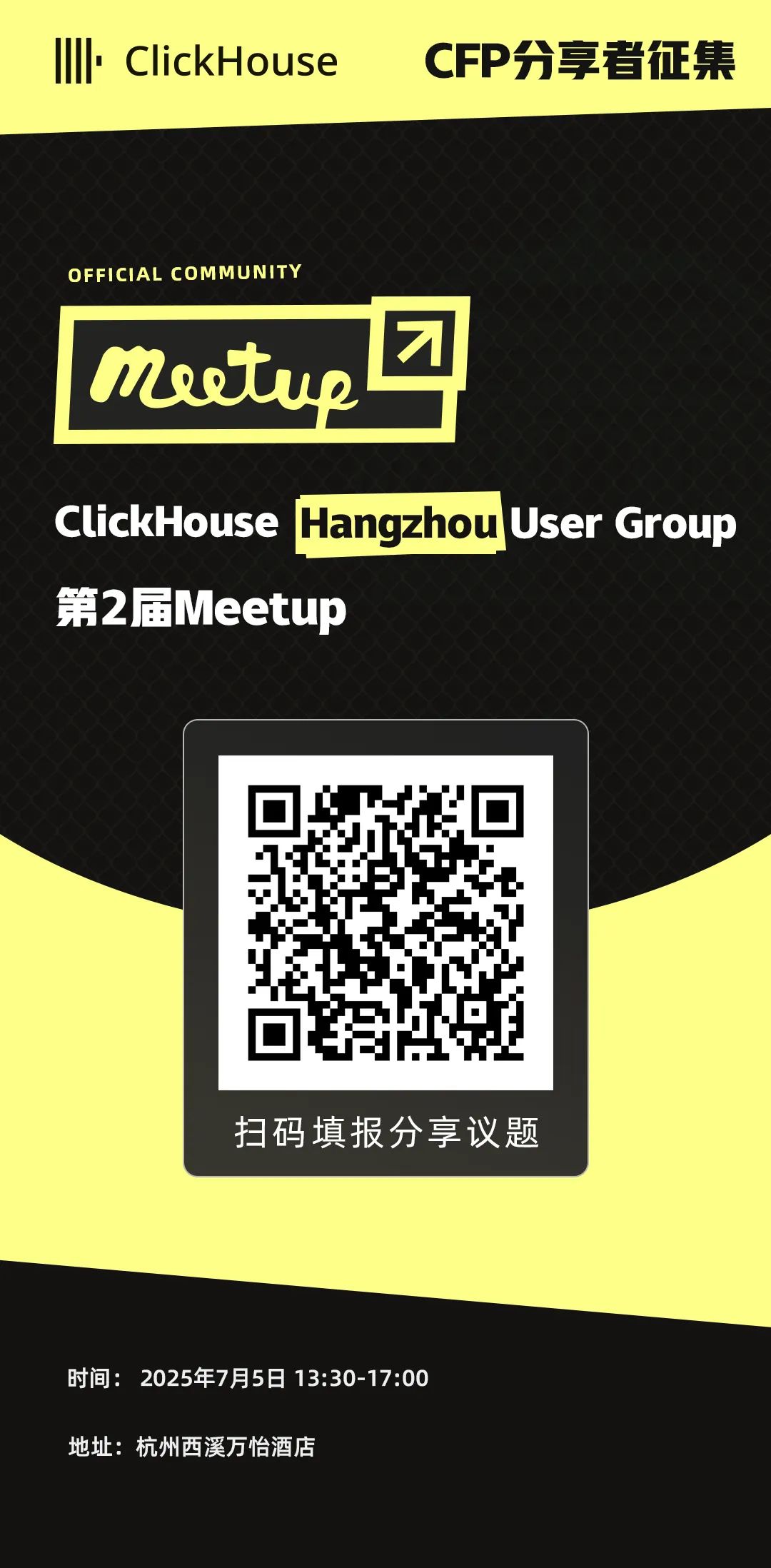 ClickHouse 杭州第二届 Meetup 讲师招募中,欢迎讲师在文末扫码报名!