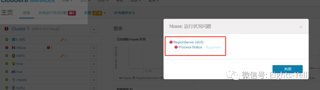 本环境为个人的测试环境,手动kill掉集群的一个Hbase的RegionServer服务,看是否可以实现自定义告警