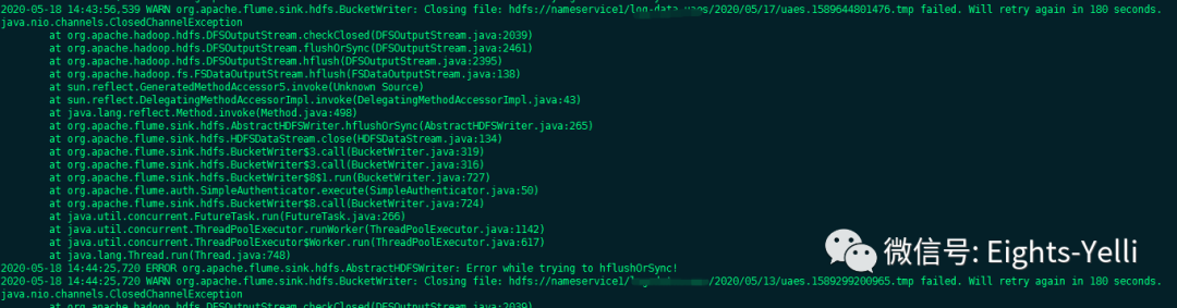 记录Flume的Error while trying to hflushOrSync异常处理流程