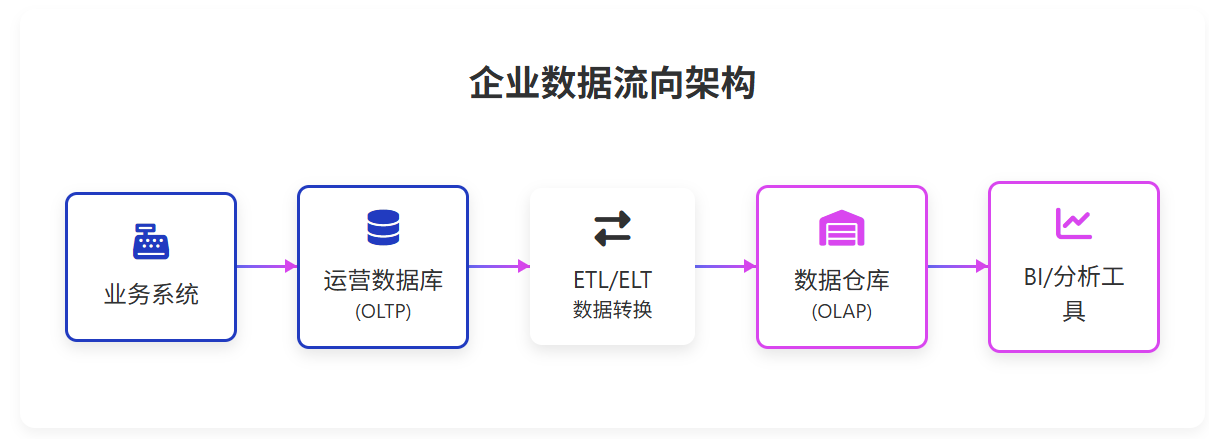数据库优化 for “many small operations”,而数据仓库优化 for “few large operations”,这一本质区别决定了它们在企业数据架构中的不同定位。