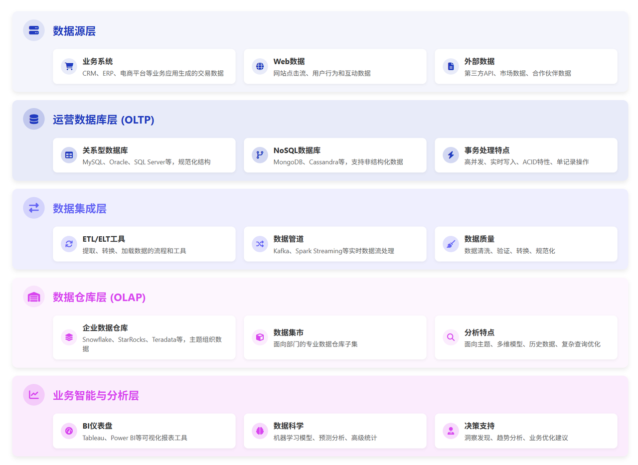 随着数据量的爆炸性增长和分析需求的日益复杂化,企业数据架构也在不断演进。无论选择何种技术方案,核心目标始终是确保数据能够有效支持业务运营和战略决策,为企业创造真正的价值。