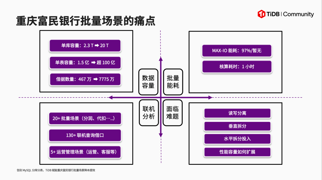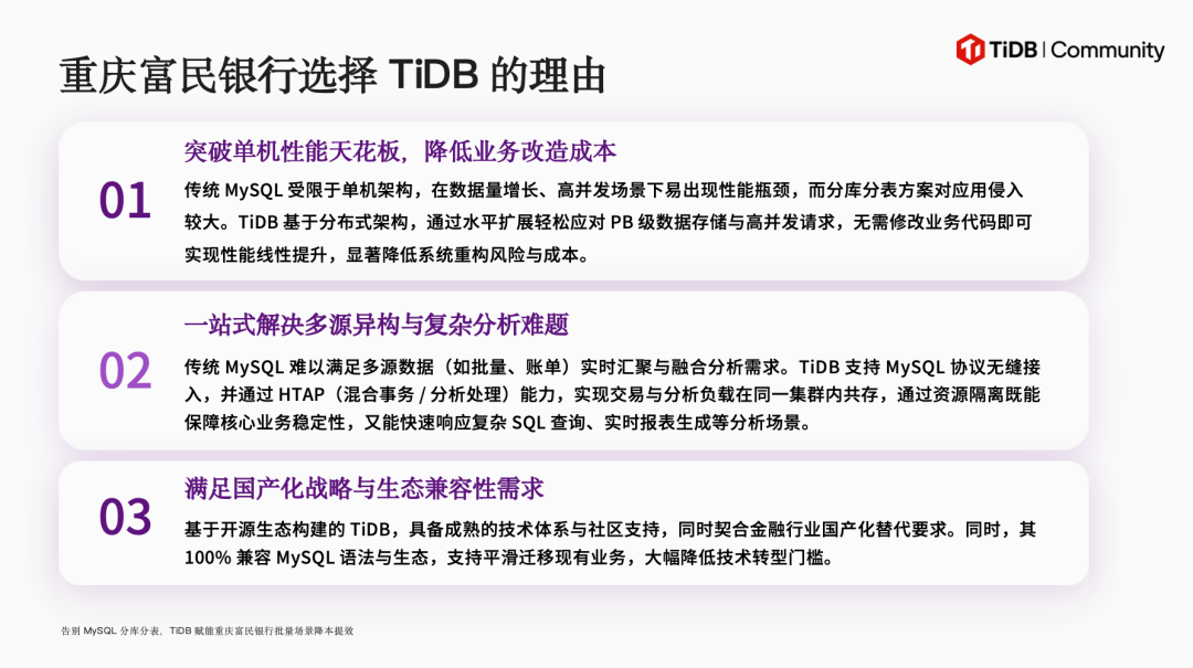 分享话题:告别 MySQL 分库分表,TiDB 赋能重庆富民银行批量场景降本提效