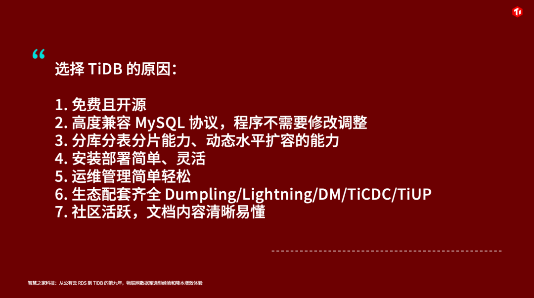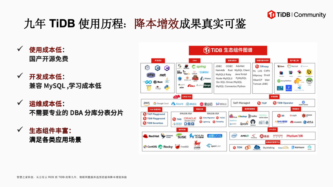 分享话题:智慧之家科技:从公有云 RDS 到 TiDB 的第九年, 物联网数据库选型经验和降本增效体验