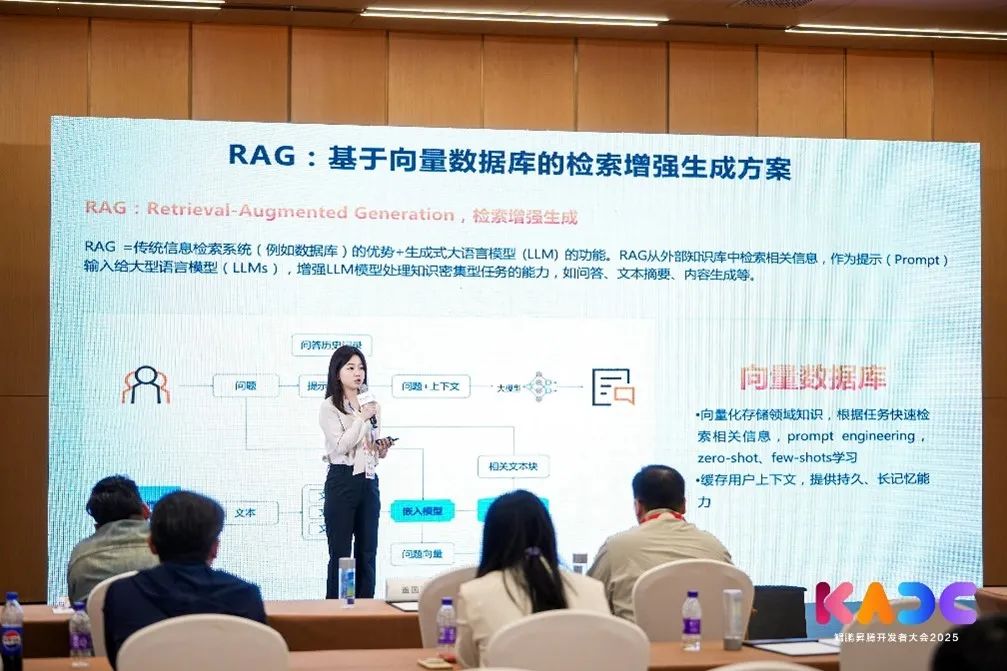 北京海量数据技术股份有限公司解决方案经理吉祥做了题为《AI 时代,Vastbase 助力企业大模型落地应用最后一公里》的专题发言。发言中,吉祥详细介绍了面向企业级AI应用落地的向量数据库、并对向量数据库核心技术进行了细致讲解、最后还介绍了海量的AI智能一体机及其优秀行业伙伴案例。