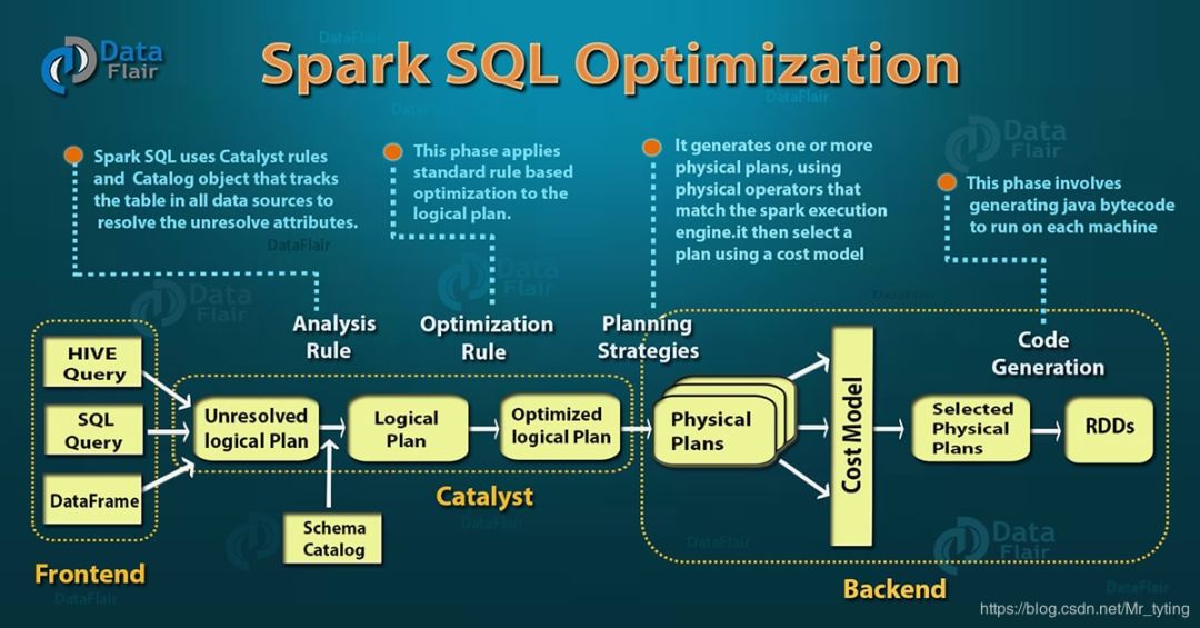 Catalyst Optimizer是基于scala中的函数编写的。Catalyst Optimizer支持基于规则和基于成本优化。