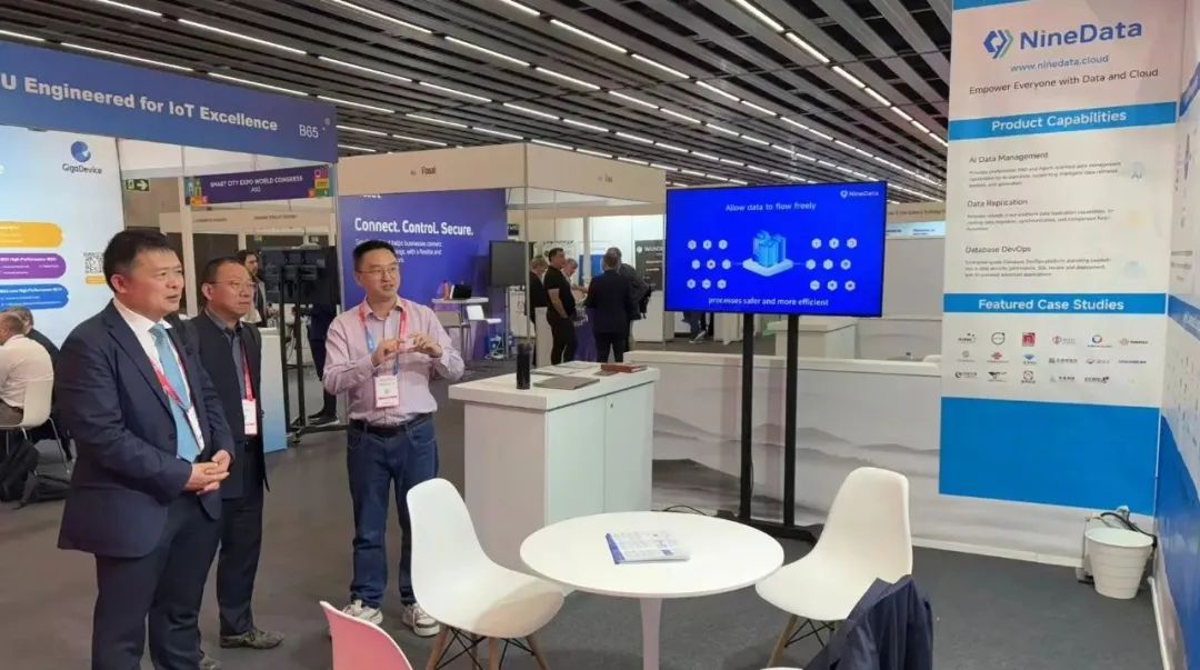 期间,中国贸促总会驻西班牙代表处副总代表翟利波,中国国际贸易促进委员会副部长章书靖,以及巴塞罗那国际会展中心相关领导一行到访考察了NineData展区,详细听取了在自主创新经验与国际合作案例,对NineData的数字经济的创新实力与国际化布局给予充分肯定。