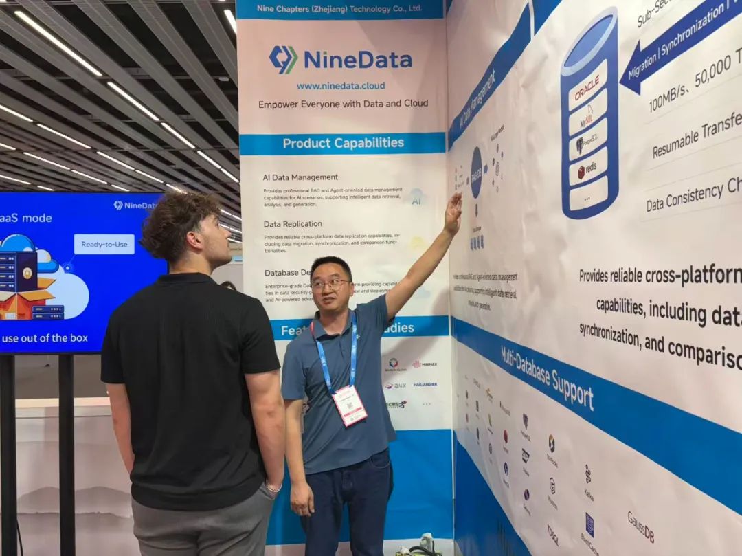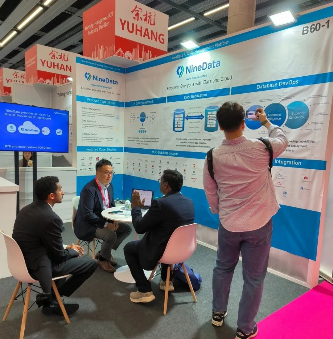 NineData合伙人&销售副总裁周鸣介绍:“中东客户对跨云数据迁移的合规性方案兴趣浓厚,欧洲企业则关注实时数据同步的行业场景适配性。”展期三天,NineData展位吸引超200位国际采购商驻足洽谈,其技术架构与应用案例获西班牙、德国等多国行业专家高度评价。