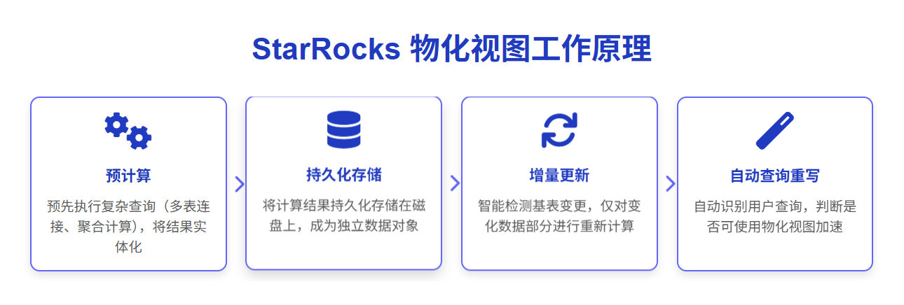 这种基于 MPP 架构的预计算优化,使 StarRocks 能够高效处理 TB 甚至 PB 级别的数据物化过程,为后续的查询加速奠定基础。