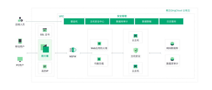 在此背景下,青云QingCloud 云防火墙正式发布,提供互联网边界流量的访问控制,集成威胁情报,并通过内置的入侵防御系统,打造用户上云的第一个网络安全基础设施,有效保护用户的云上资产和数据。