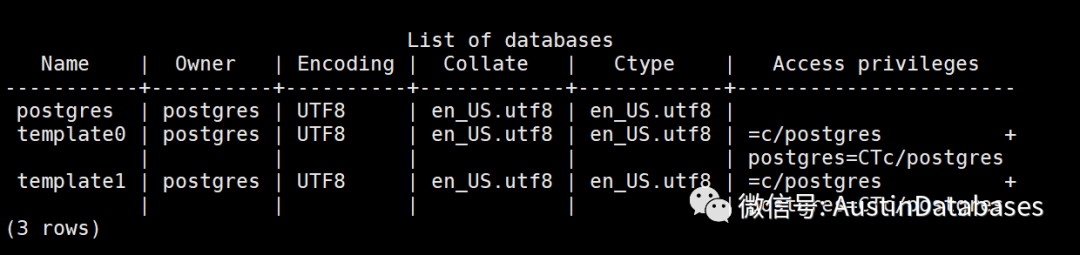 pg_catalog.array_to_string(d.datacl, E'\n') AS "Access privileges"