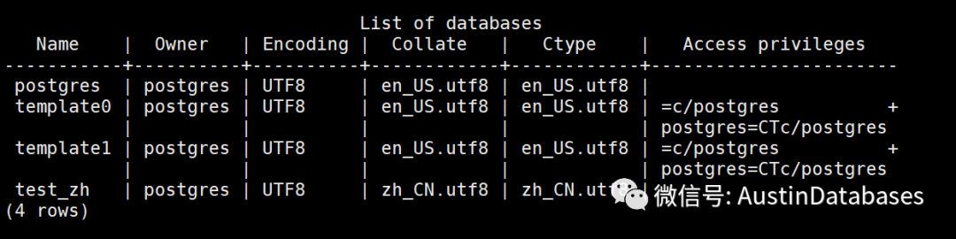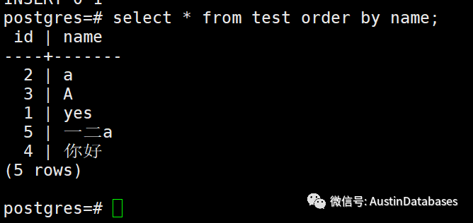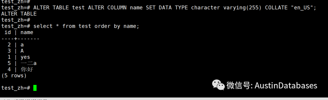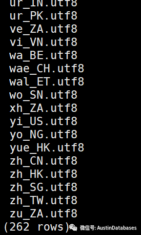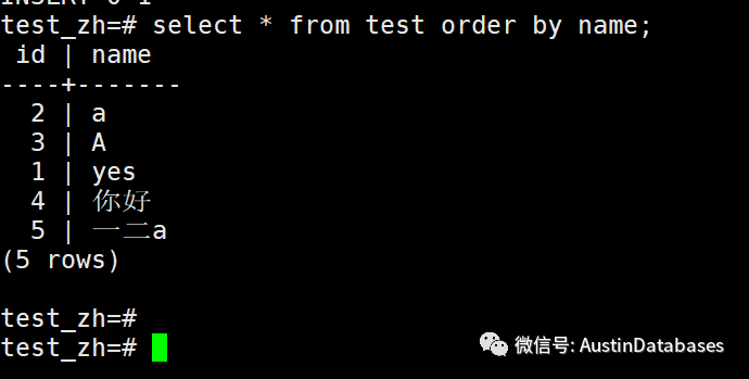 我们创建一个使用collate 为 zh_CN的数据库,对比 en_US的数据库又什么不同