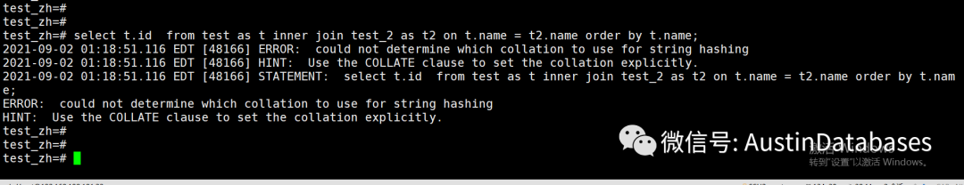 2021-09-02 01:18:51.116 EDT [48166] HINT: Use the COLLATE clause to set the collation explicitly.