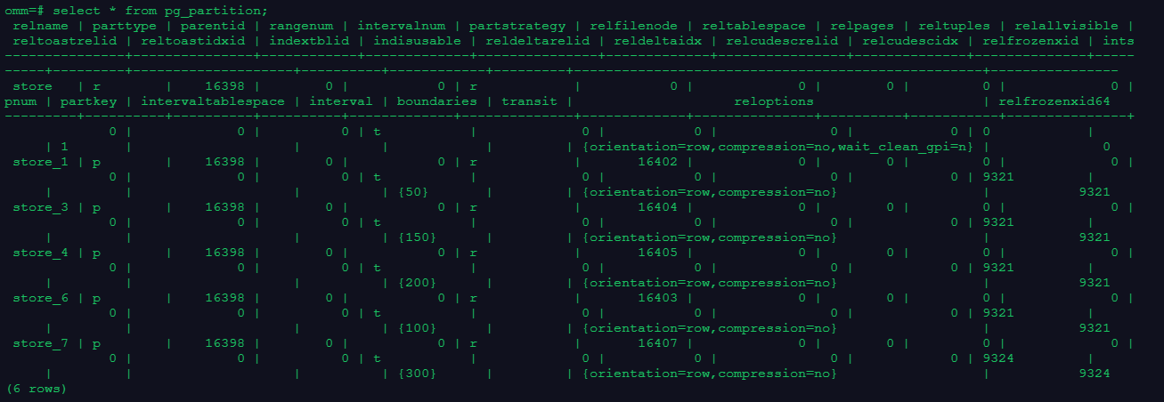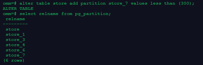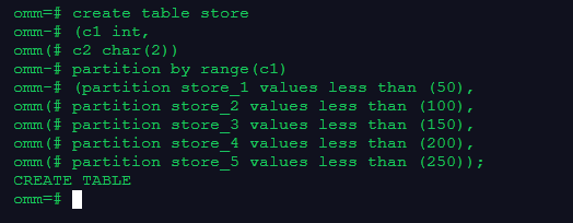 1.创建一个含有5个分区的范围分区表store,在每个分区中插入记录