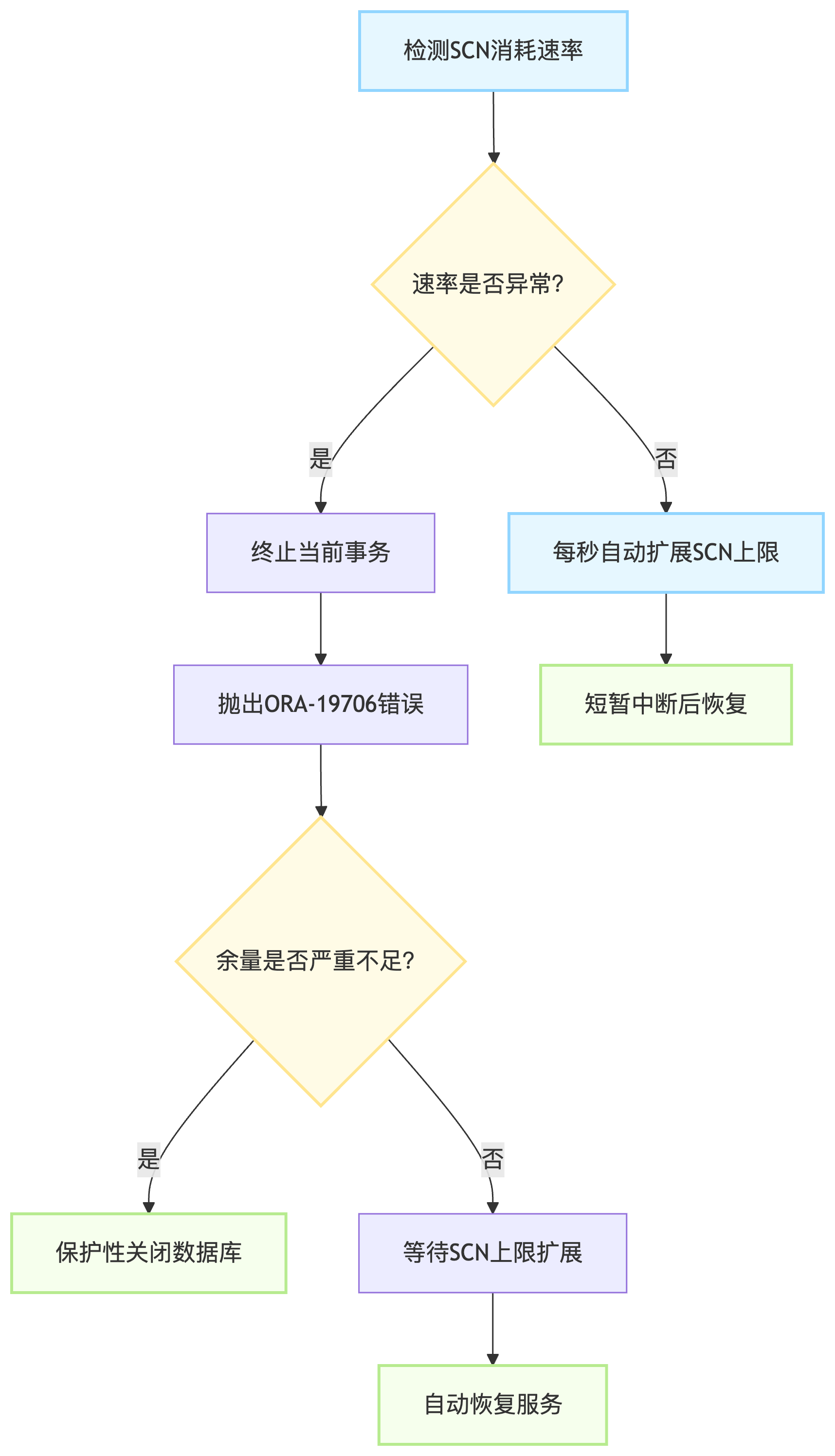 SCN 可用余量是指数据库当前使用的 SCN 与"不可突破"的上限值之间的差额。对于绝大多数 Oracle 数据库而言,这个余量每秒钟都在持续增长。
