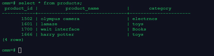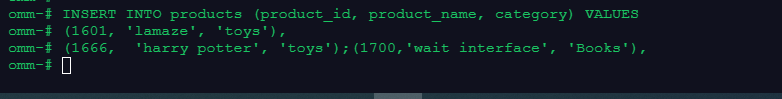 INSERT INTO products (product_id, product_name, category) VALUES