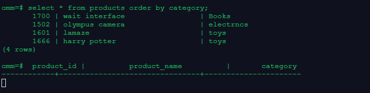 SQL: select * from products order by category;