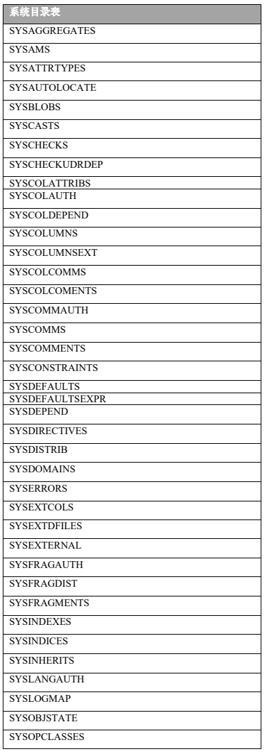 以下系统目录表描述了 GBase 8s 数据库中的数据库对象。