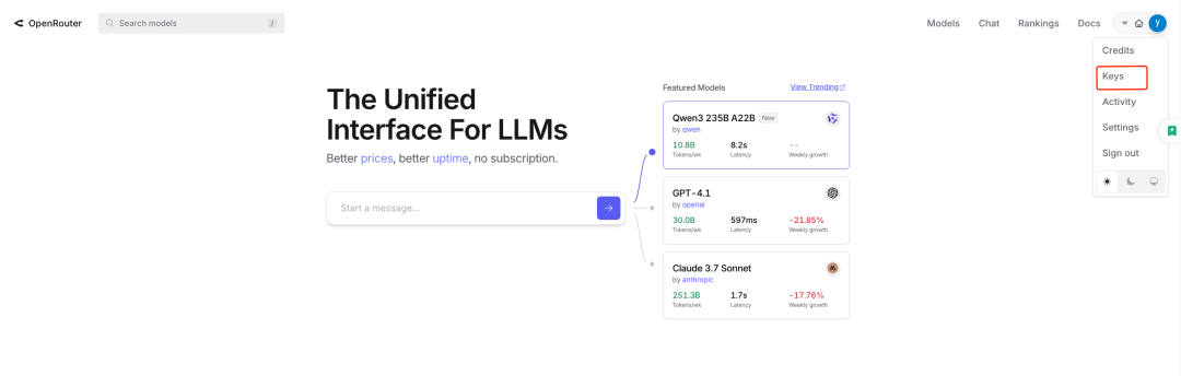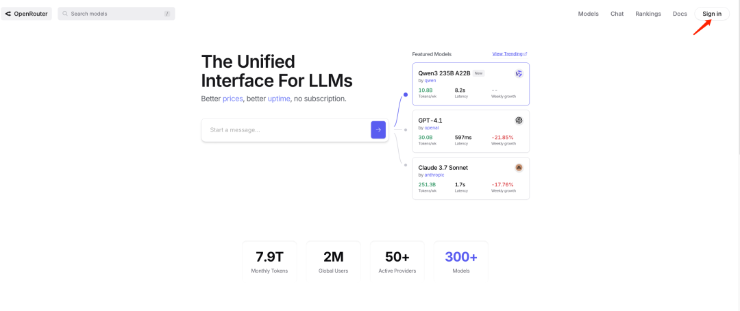 打开OpenRouter首页并登录