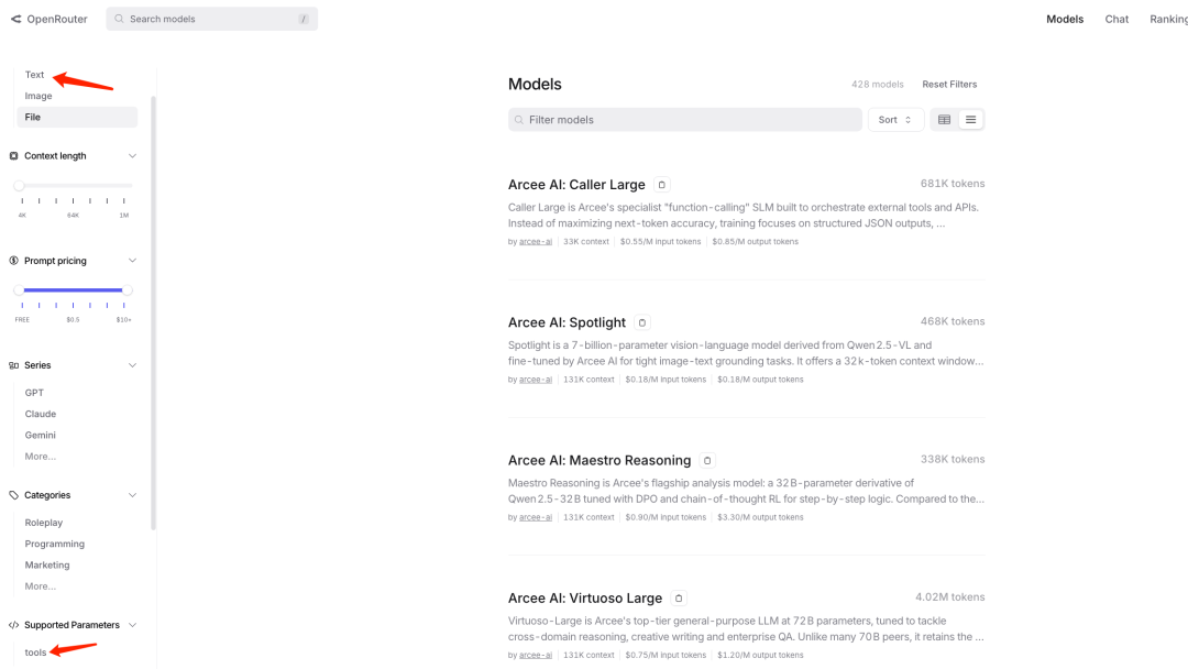 说明:为保证一定能选到支持Tools的模型,请务必增加筛选条件。根据您的需求筛选并选择合适的模型。