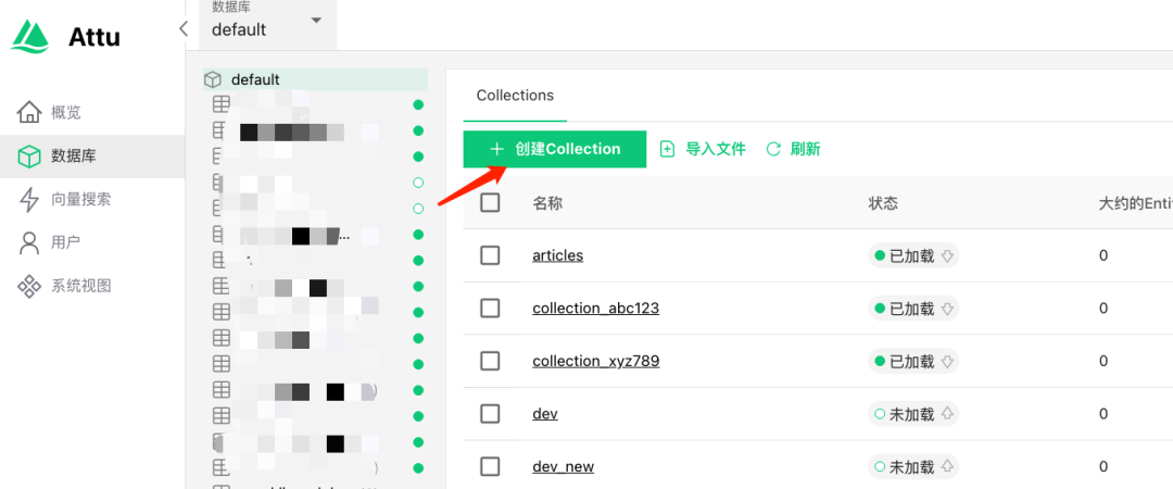 说明:在Attu中创建用于存储向量的Collection