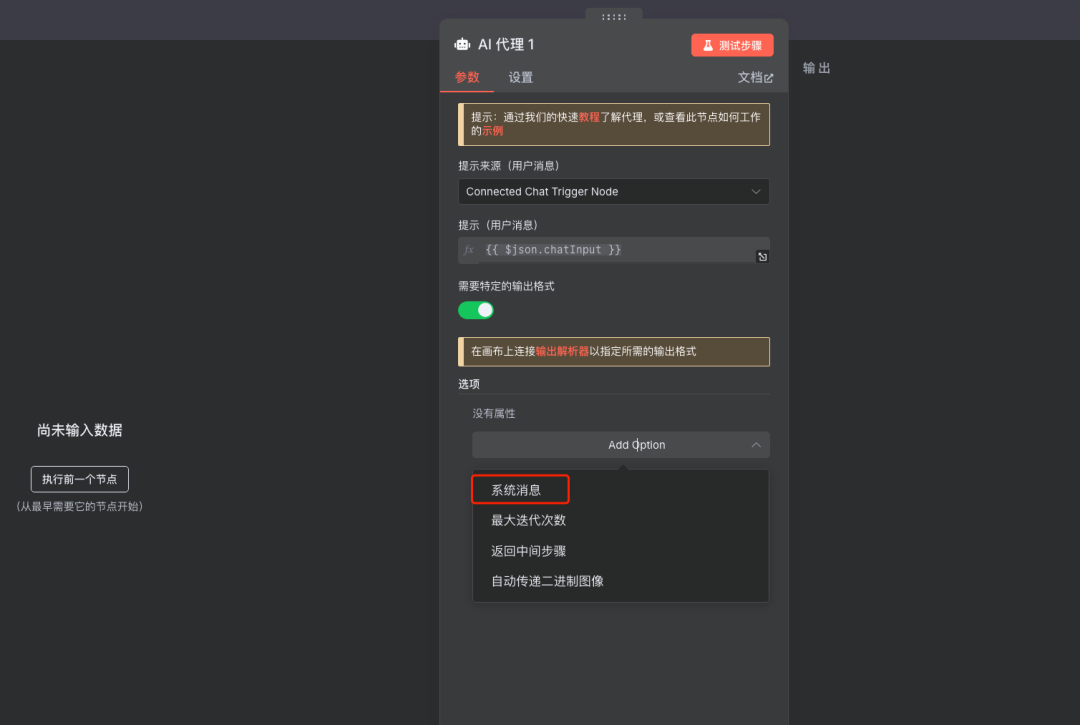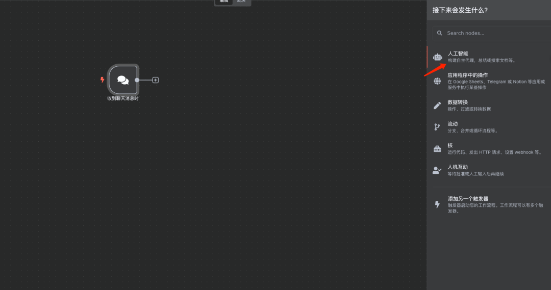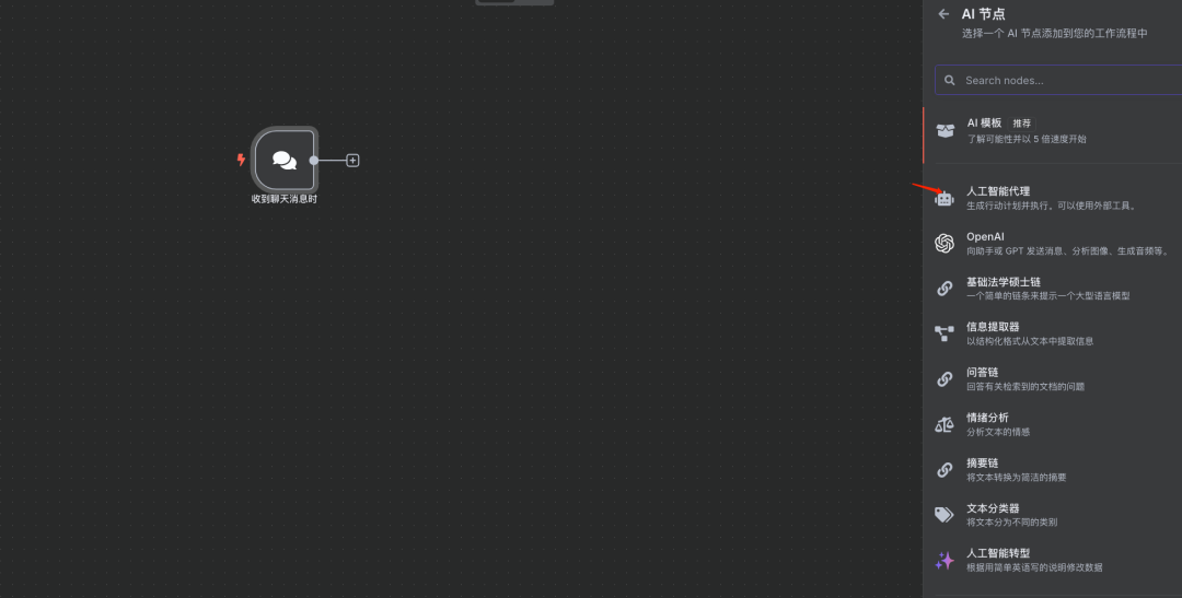 步骤2:添加AI-Agent代理节点