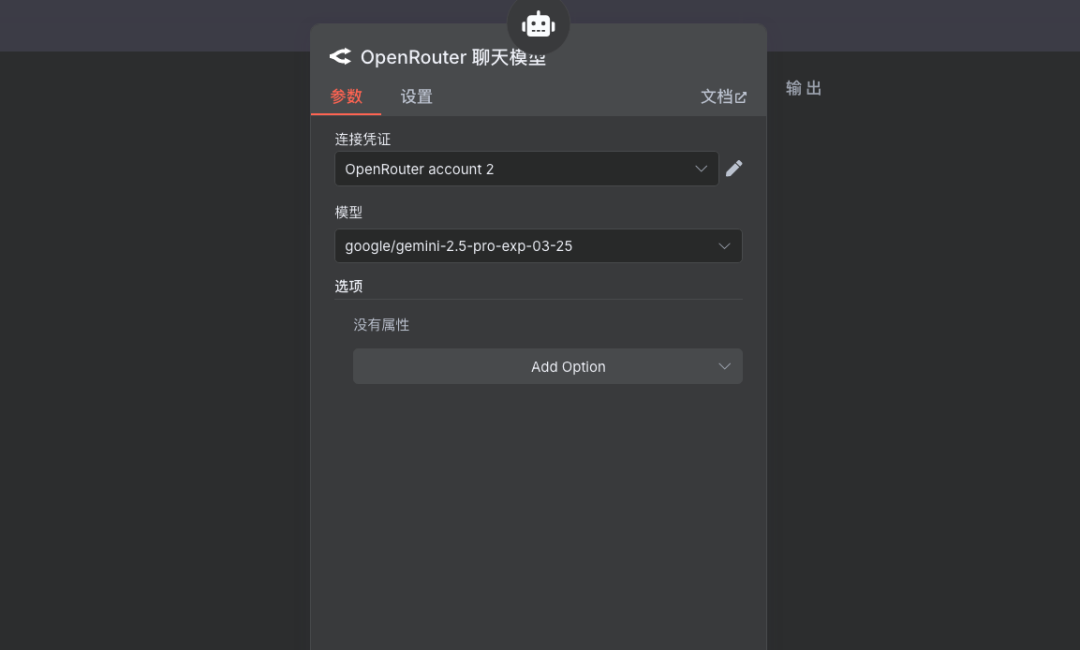 说明:添加刚才在OpenRouter创建好的Key并选择支持Tools工具的模型即可。 在LLM节点中配置OpenRouter的API密钥,并选择之前确定好的、支持Tools的模型。