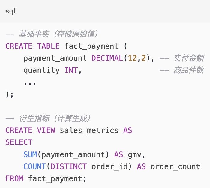 记录业务事件度量值(如销售额、库存量) 本质是动词:购买、支付、退货...
