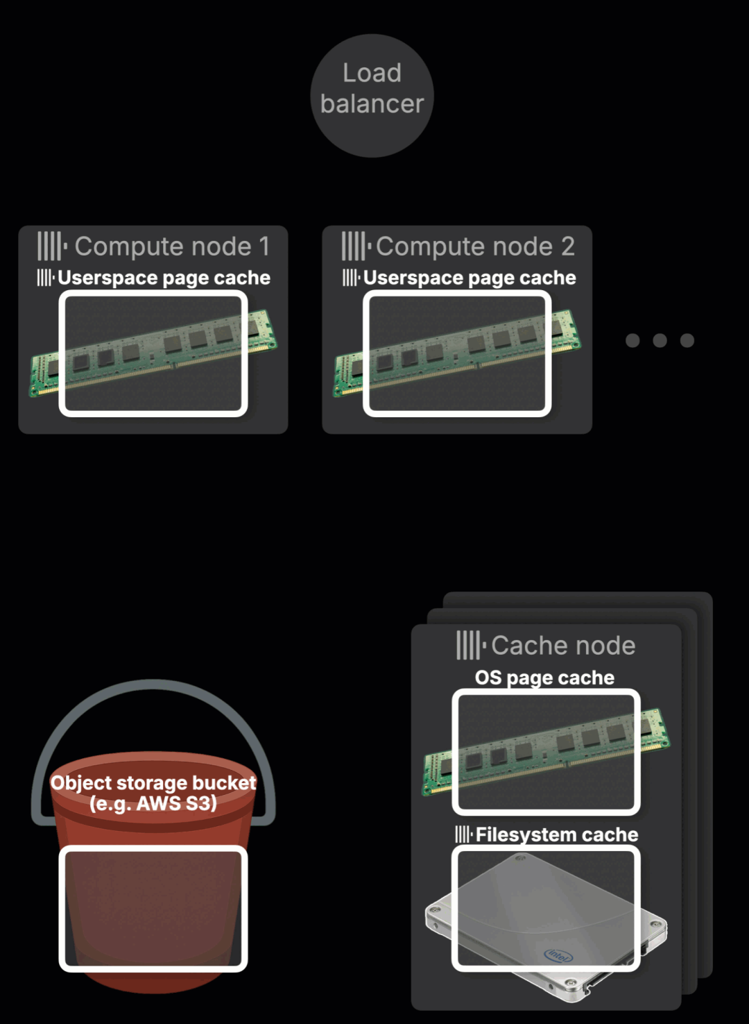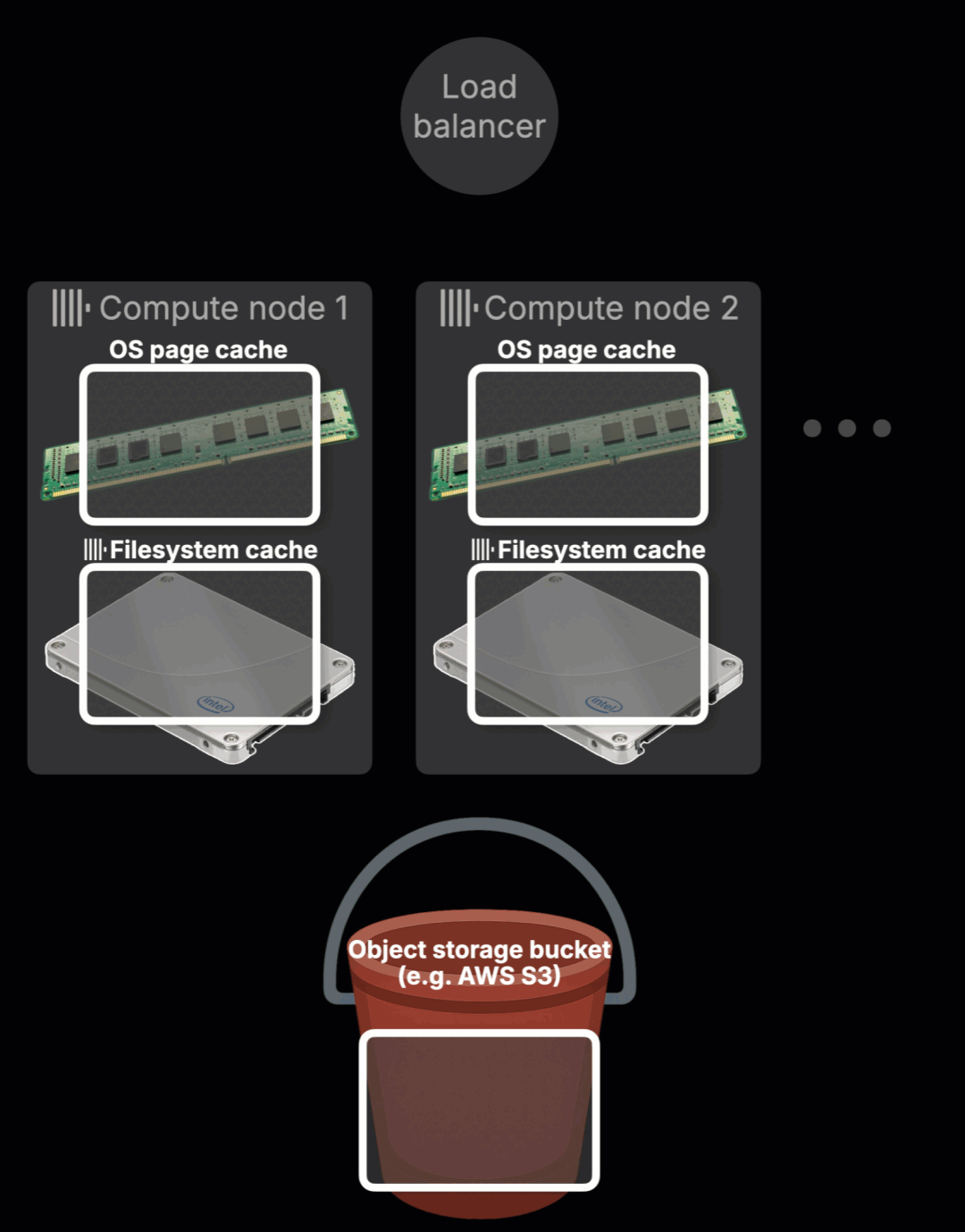 包含本地 SSD 和操作系统缓存的计算节点,用作 S3 缓存。