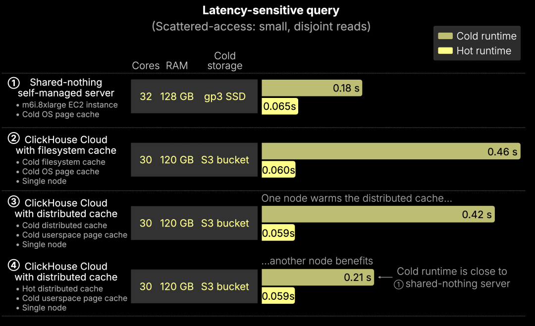 因此,在许多真实分析查询场景中,延迟往往成为主要瓶颈 —— 无法用带宽或并发手段“摊平”。
