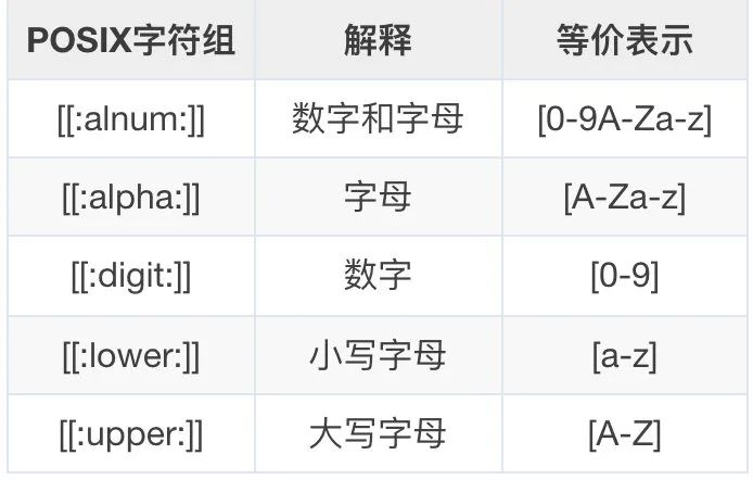 篇幅原因,仅提供部分需要关注的对比,具体看【附录-POSIX 字符组详细内容】。