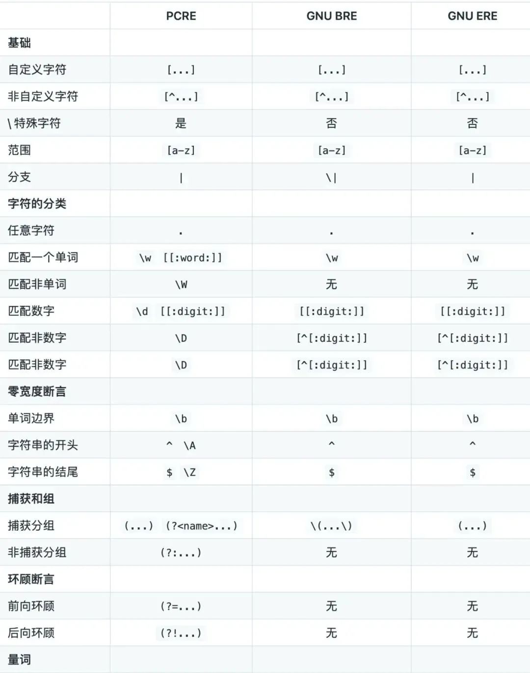 《精通正则表达式》第 3 版 07 | 正则有哪些常见的流派及其特性? 正则表达式“派别”简述 - Keep Coding 正则表达式的历史与几大流派 - 小蒋不素小蒋 - 博客园 Regex cheatsheet GNU 是什么,和 Linux 是什么关系?- 知乎 Difference Between Linux And BSD | Open Source Operating Systems Unix, BSD, GNU 和 Linux 之间是什么关系?- 掘金 PCRE、GNU BRE、GNU ERE 对比