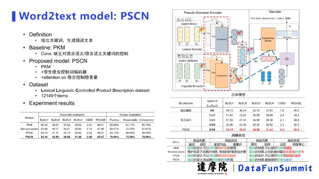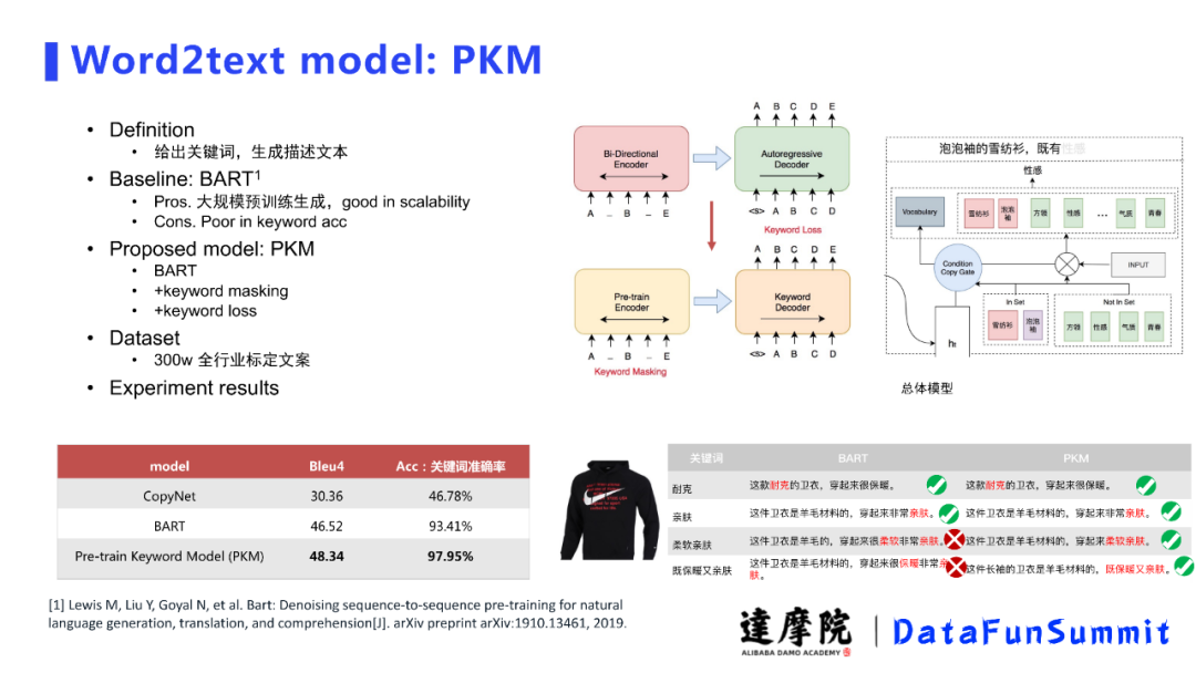 第一个模型是针对关键词在生成文案里面错误的一个损失强化了商品的某些特有的词语而不是我们日常聊天的普通词汇,强化之后在电商表现上好了很多。