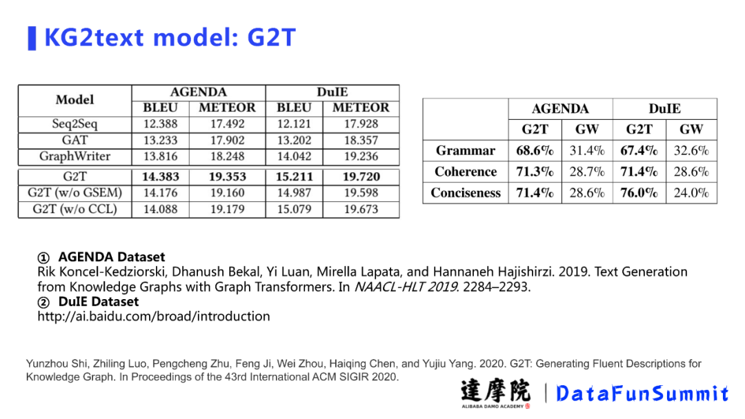 KG2text model:G2T for RQ2