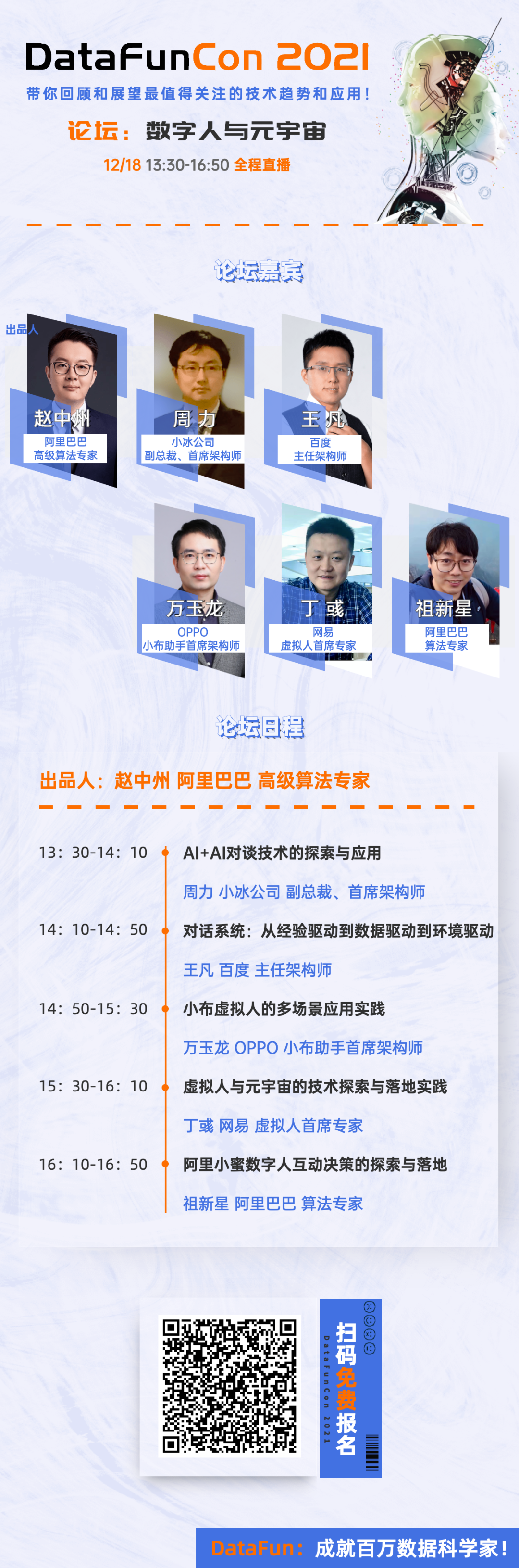 这是一个关于进化的故事:12月18日,在DataFunCon年终大会上,我们将从对话技术出发,探讨一步步如何从智能对话到虚拟人,再到元宇宙的终极目标,干货多多,精彩不断,感兴趣的小伙伴,欢迎识别海报二维码,免费报名收看!