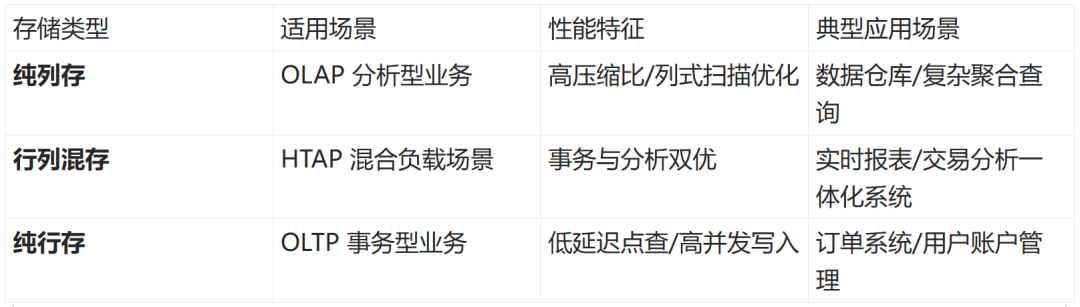 (一)行存与列存特性对比