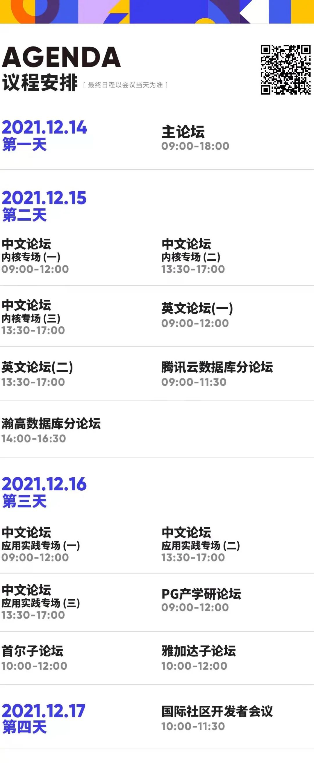 12月14日-17日,2021年度PostgreSQL亚洲技术大会(PostgresConf.CN & PGConf.Asia2021)即将隆重举行。