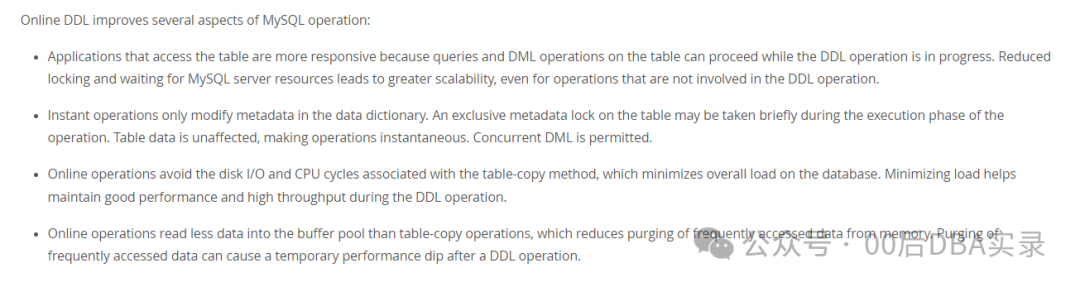 INPLACE 算法并不是所有操作都允许并发 DML,就像上一篇写的 INPLACE 降级 COPY的案例,部分操作需要临时数据文件,当然这需要要从 INSTANT 降级为 INPLACE ,INSTANT 只需要修改元数据就可以了。